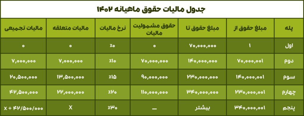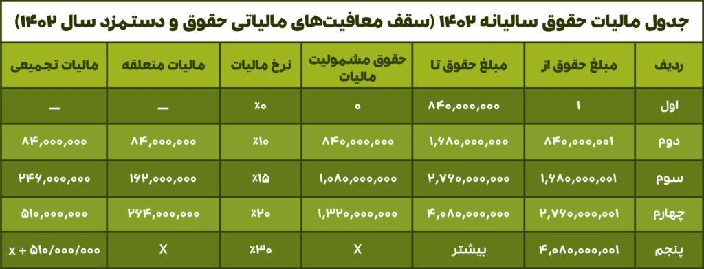 سقف مالیات بر حقوق 1402